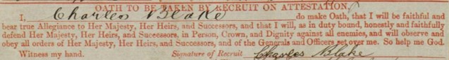 In 1885, on the 9th May, Charles swore the oath, apparently in London, to enlist as a private soldier, number 2958, in the 2nd Dragoon Guards "The Queen's Bays". The available Army records for Charles are shown in full in a separate page.