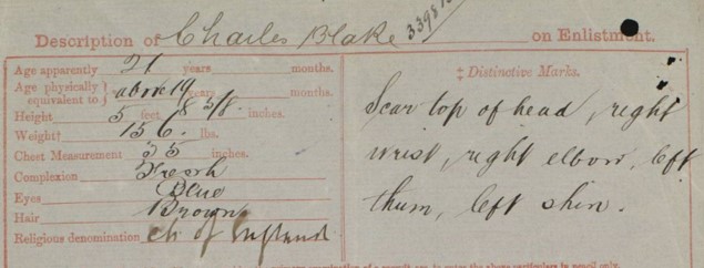 His medical examination in London on 9th May, confirming him as fit for service in the Army, shows his physical particulars: